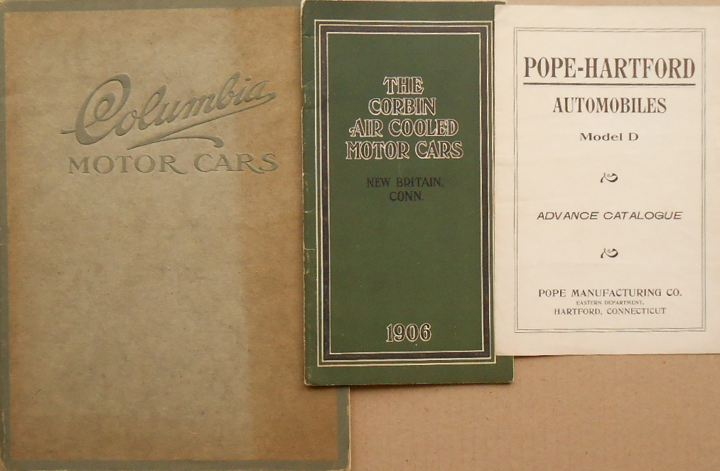 3 CT made auto catalogs – 1905 Pope Hartford adv catalog, 1906 Corbin Air Cooled, 1908 Columbia