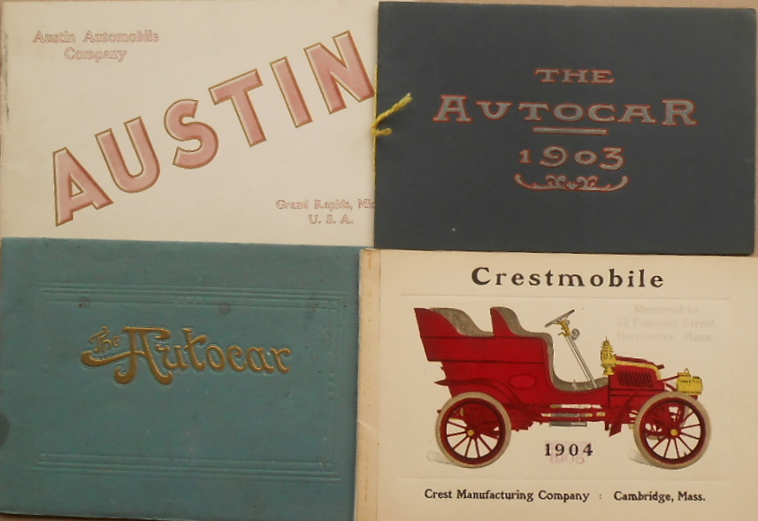 Four catalogs – 1902 Autocar, 1903 Autocar, 1904 Crestmobile, 1906 Austin