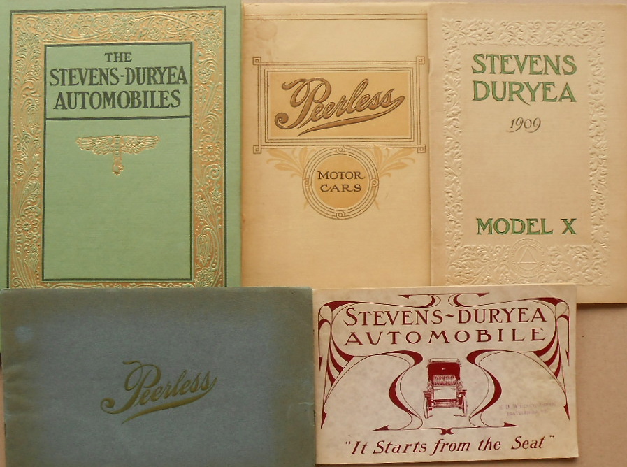 5 items – 1904, 1908 hardcover, 1909 Stevens Duryea, 1905, 1907 Peerless catalogs