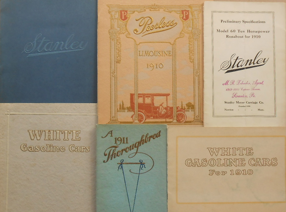 6 catalogs – 1910, 1911 White gas engine, 1910, 1916 Stanley, 1910 Peerless, 1911 Stevens Duryea