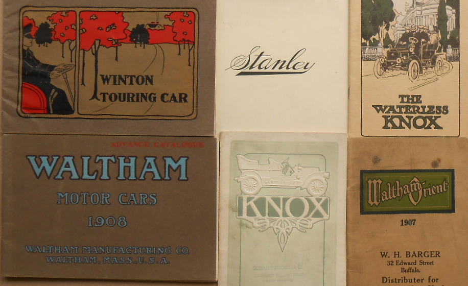 Six catalogs – 1903 Winton, 1905, 1907 Knox, 1906 Stanley, 1907 Waltham orient, 1908 Waltham