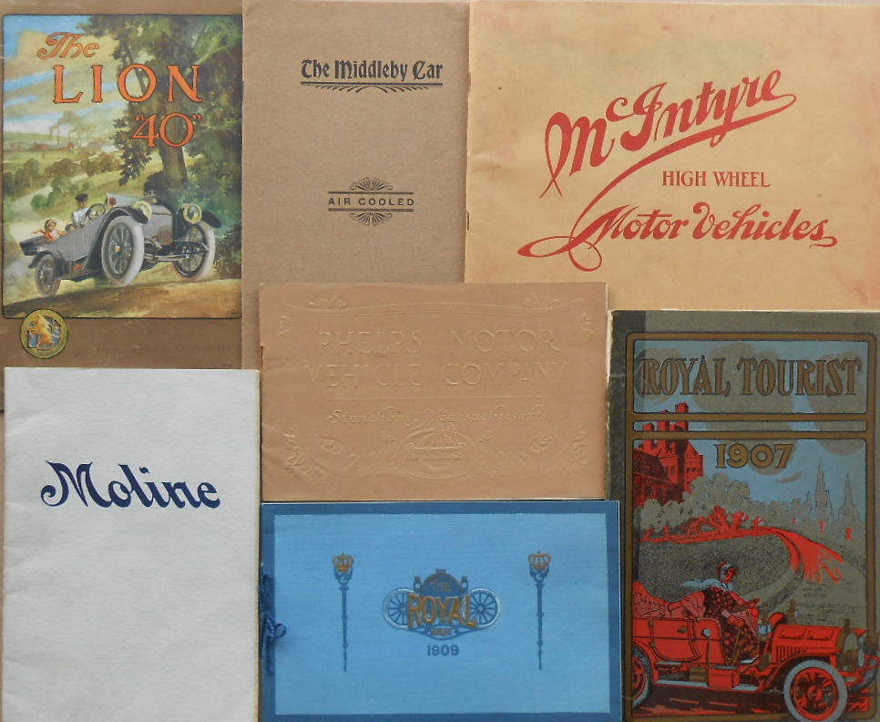 7 cat – 1905 Phelps, 1907 &1909 Royal Tourist, 1906 Moline, 1909 McIntyre, 1909 Middleby, 1912 Lion