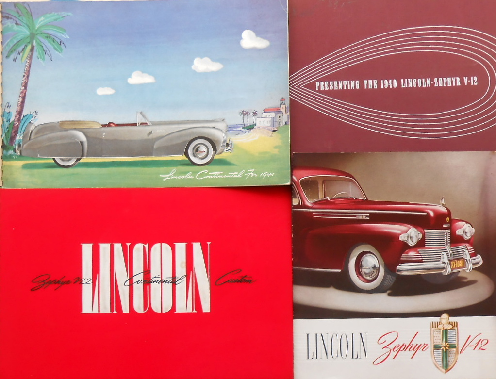 4 Lincoln items – 1940 incl Continental, 1941 incl Continetal, 1941 Continental only, 1942 Zephyr fldr