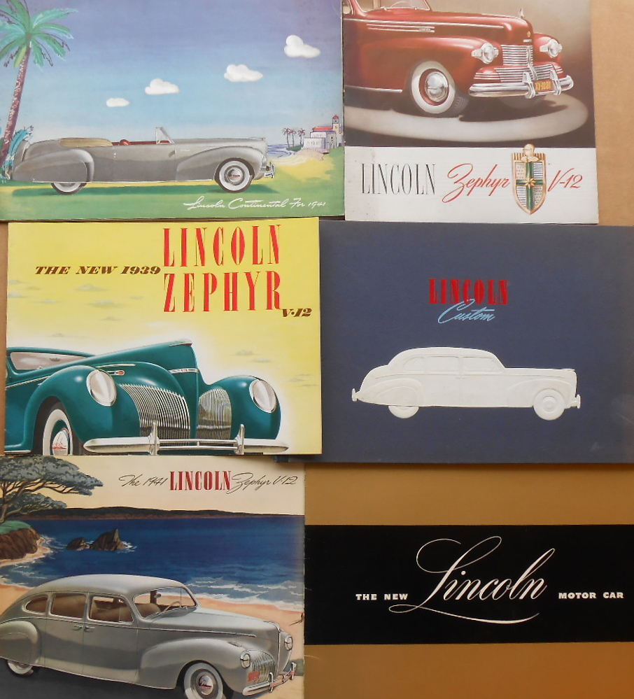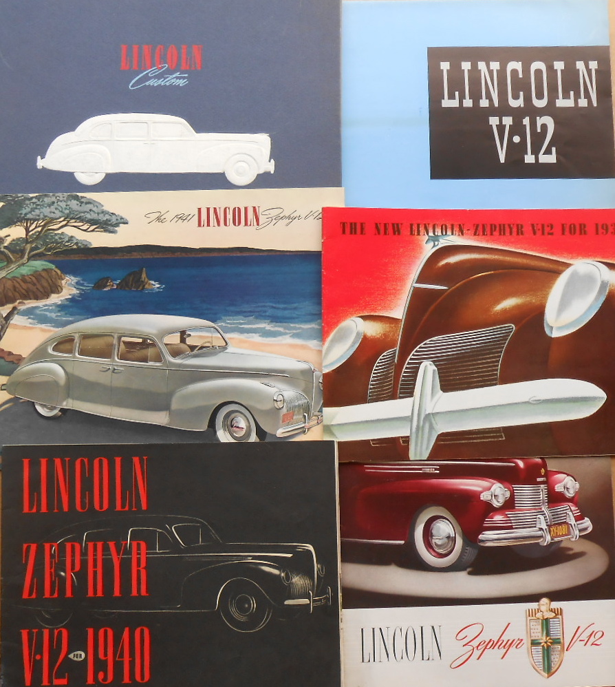 6 Linc items – 1939 Zephyr, 1941 Zeph, 1941 Custom, 1941 Continental, 42 Zephyr, 1946 incl Continental