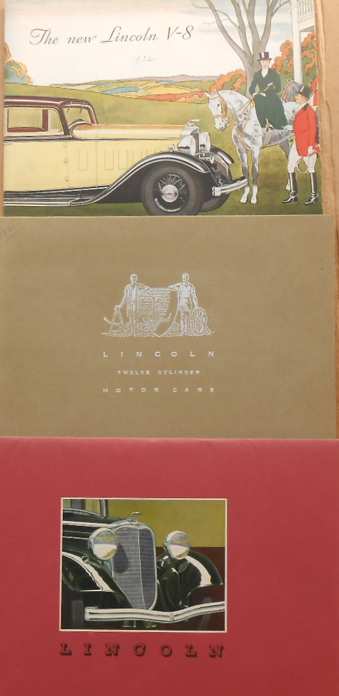 Three Lincoln catalogs – 1932 V 8, 1932 KB V 12 – 145 wh base , 1933 V 12 – 136 wh base