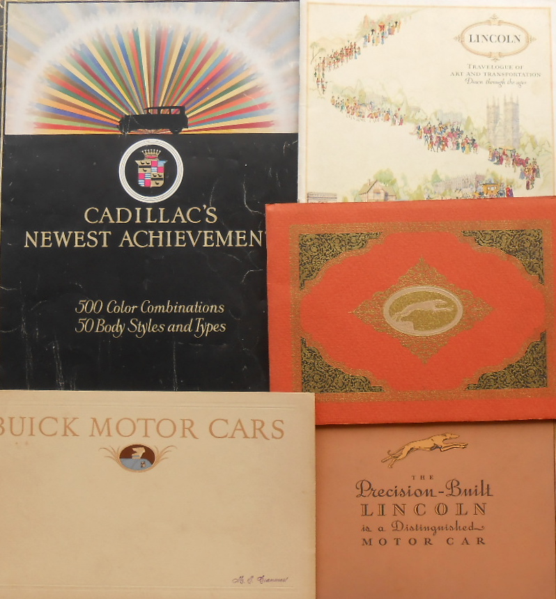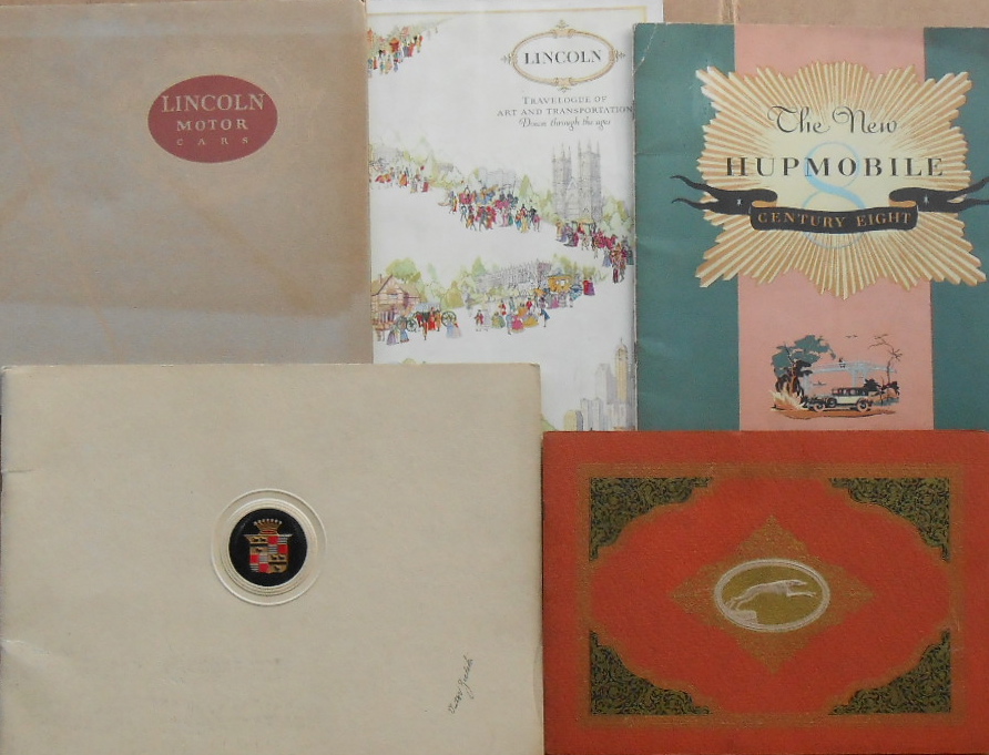 5 catalogs – 1926 and 1927 Lincoln, 1927-28 Lincoln Salon, 1927 Cadillac, 1929 Hupmobile
