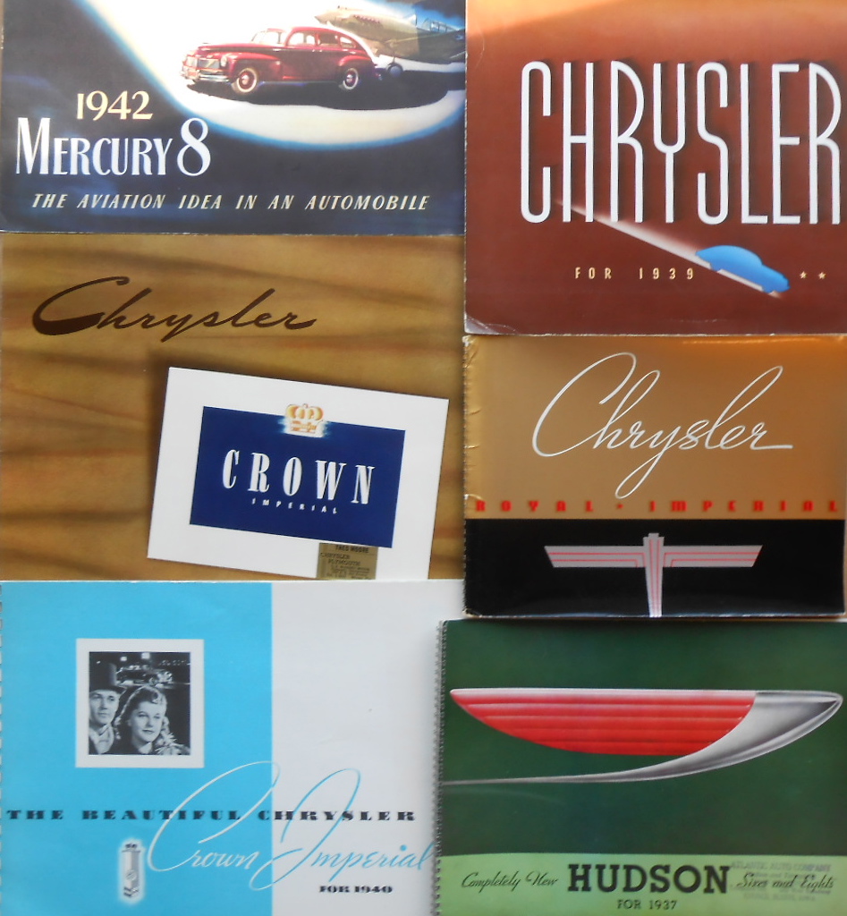 6 items – 1938, 1939 Chrysler, 1940, 1941 Chrysler Crown Imperial, 1937 Hudson, 1942 Mercury