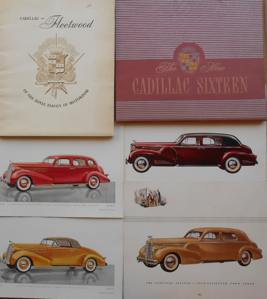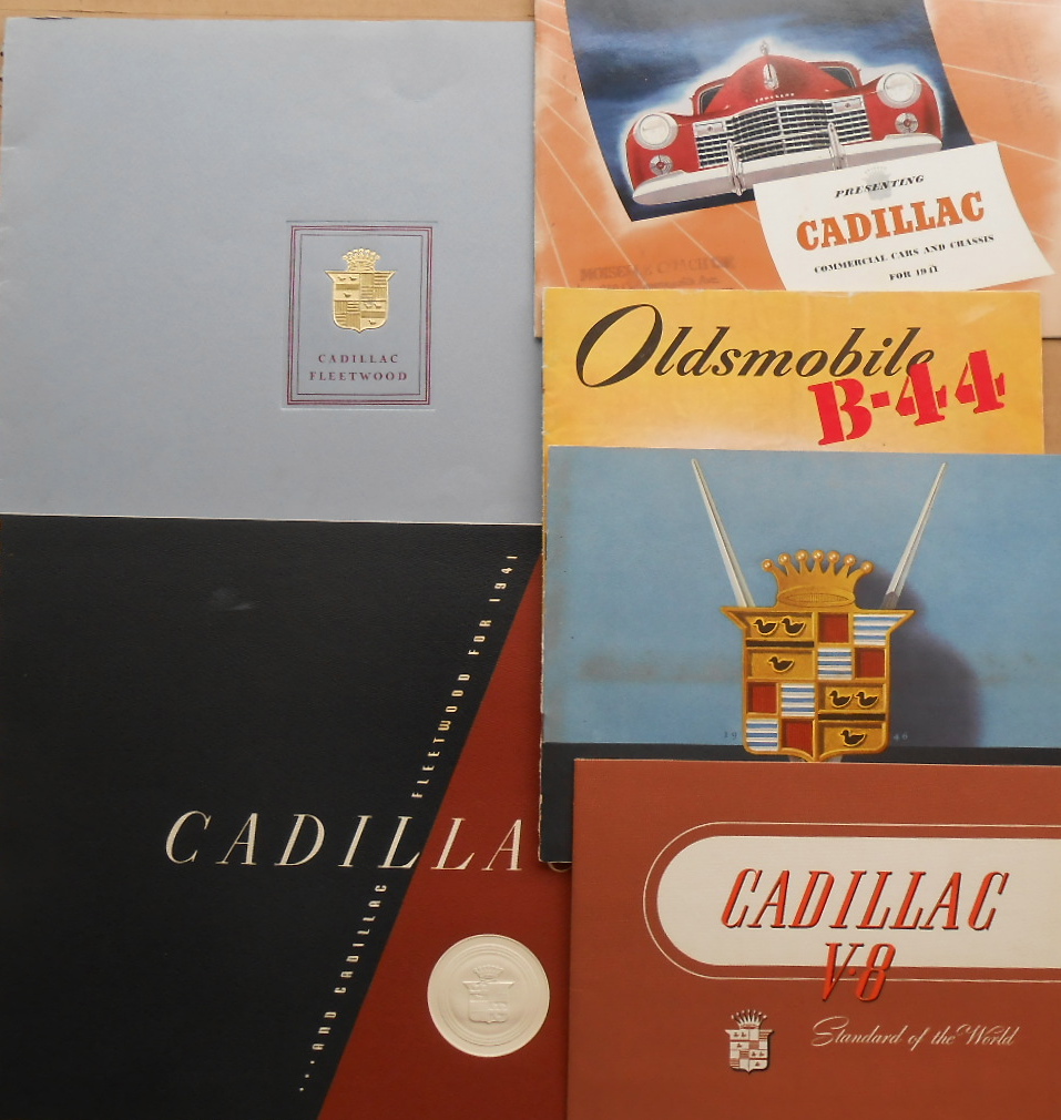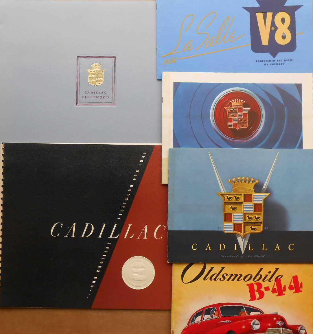 6 items – 1939, 1941 Cadillac lg spiral bd, 1941 Cad Comm Cars, 1938 Cad sm port, 1946 Cad, 1942 Olds