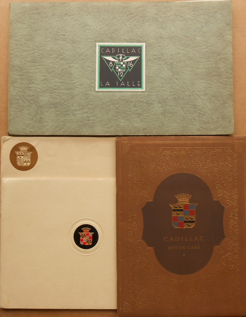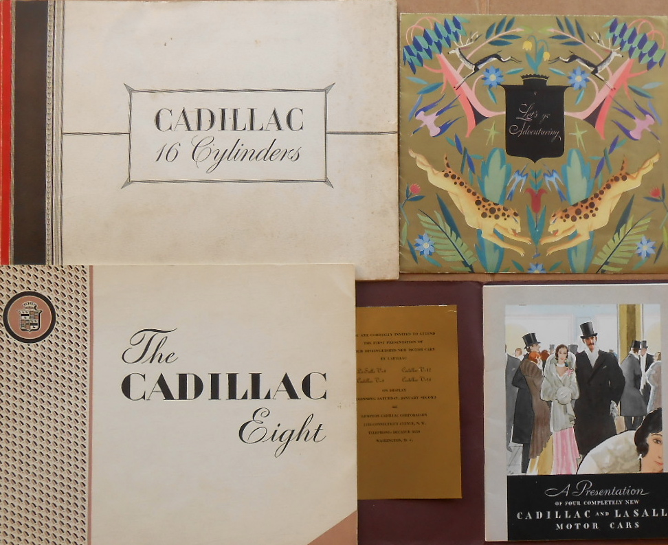 4 Cadillac items – 1930-31 V 16 catalog with tissue plates, 1931 V 8, two diff 1932 Cad, LaSalle