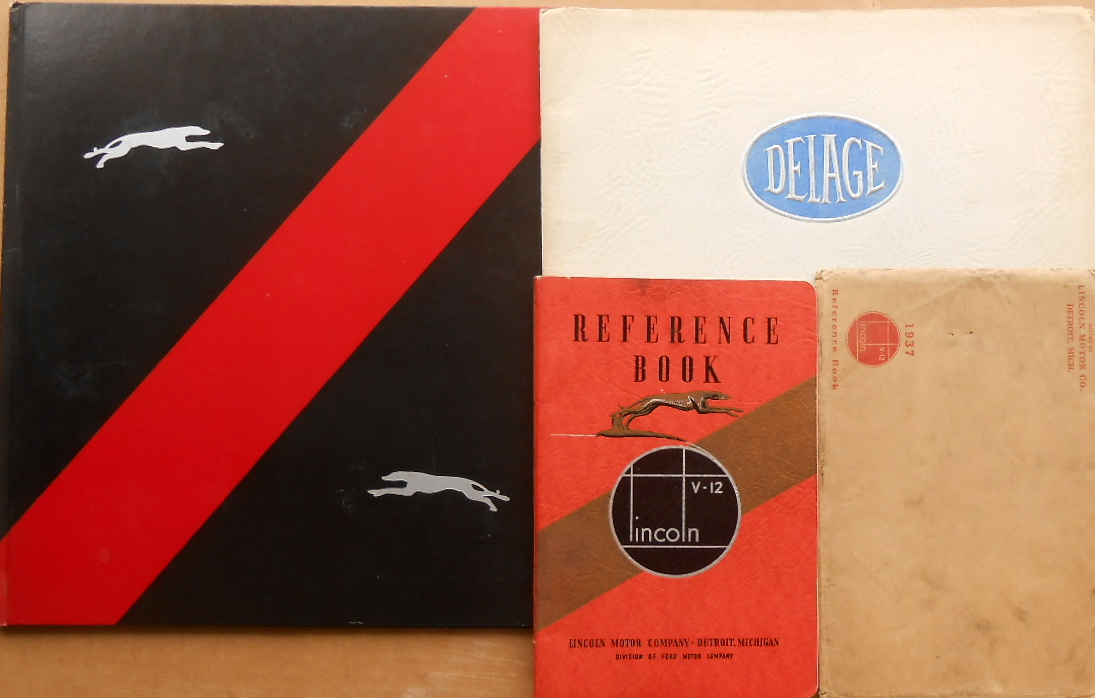 3 items – 1937 Delage cat, 1933 Lincoln KB custom body hard cover cat, 1937 Lincoln Model K cat