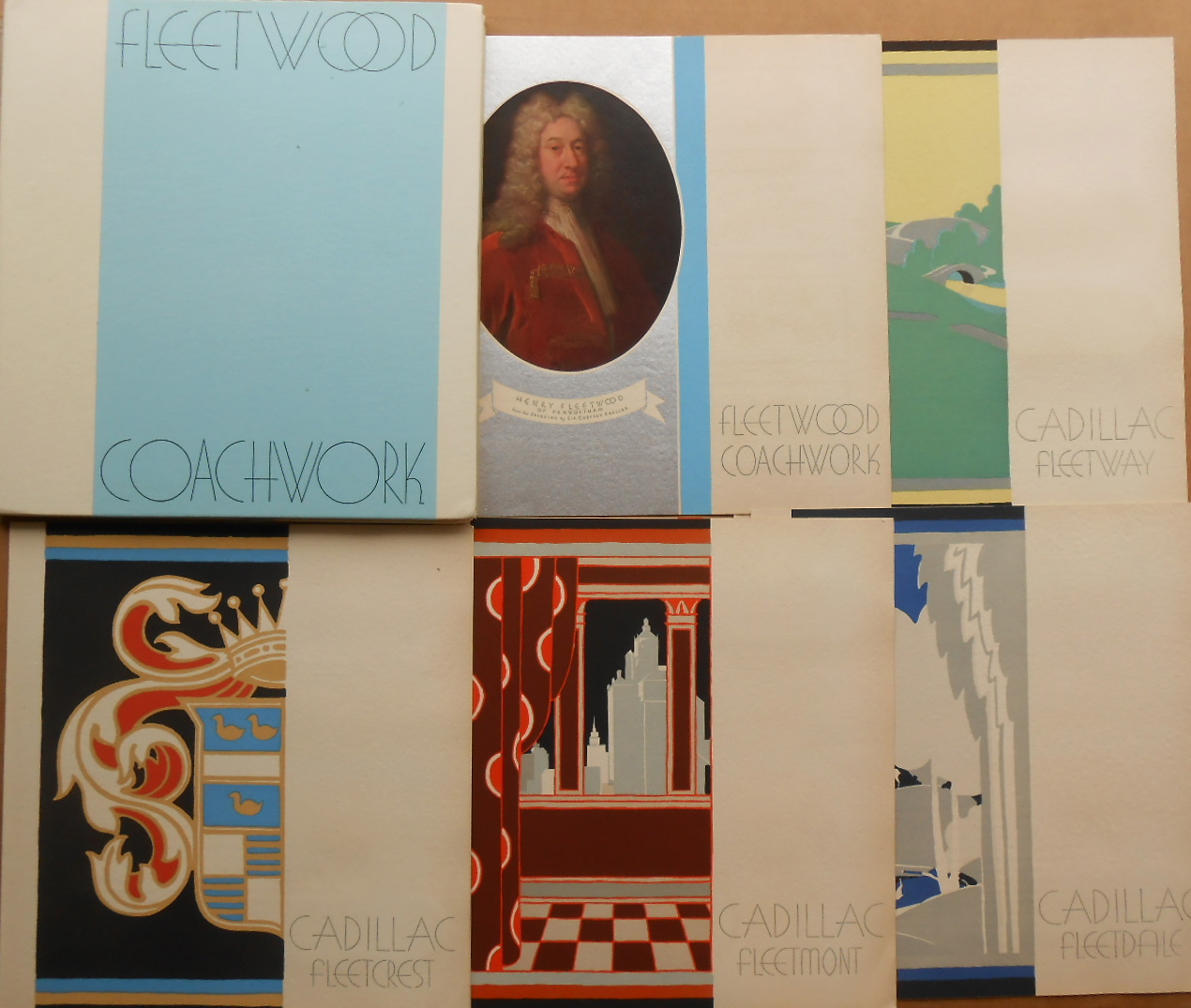 1930 Cadillac Fleetwood Coachwork / orig env, 14 plate folders of Fleetwood designs, 12 x 13.5