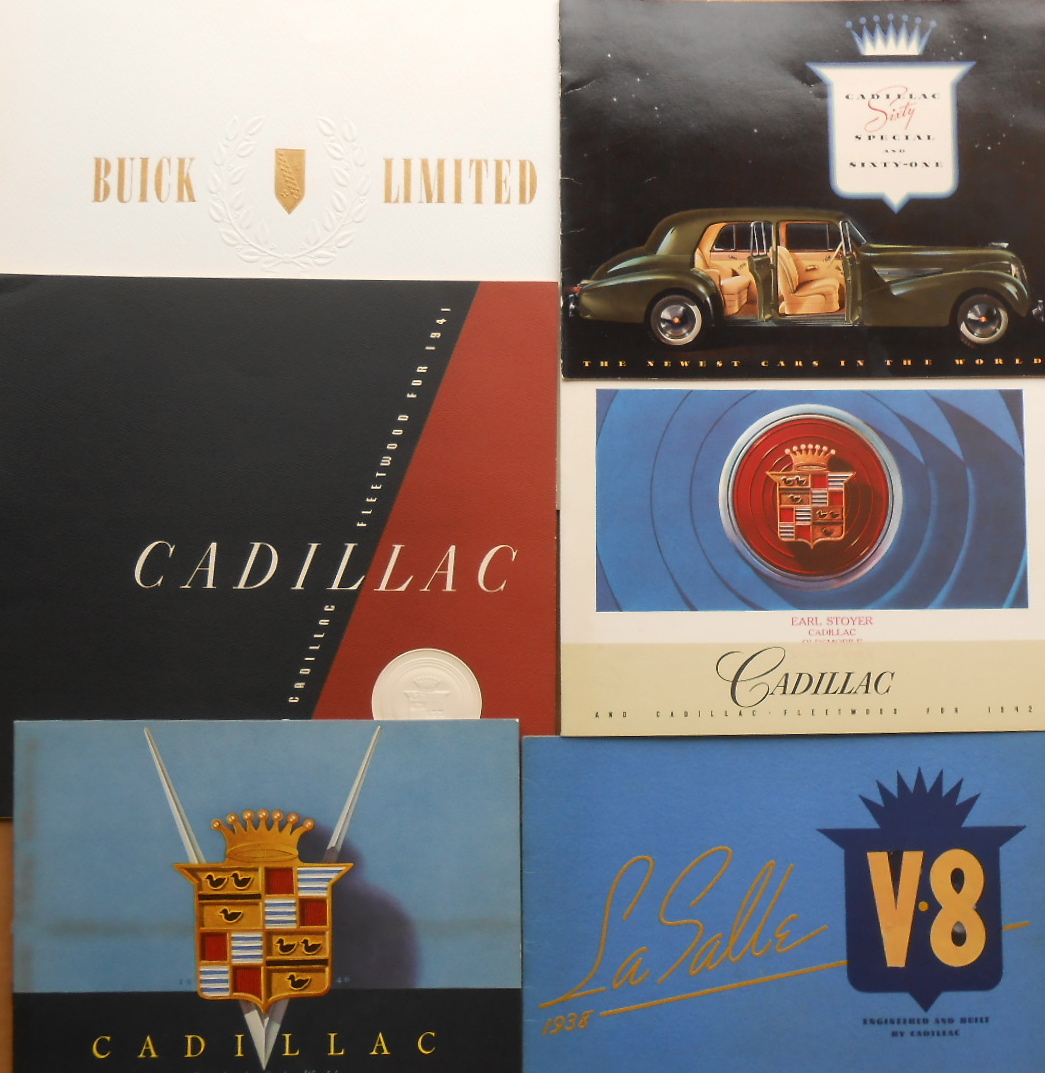6 items – 1941 Buick & Cadillac lg spiral bd cat, 1938 LaSalle, 1939, 1942, 1946 Cadillac catalogs