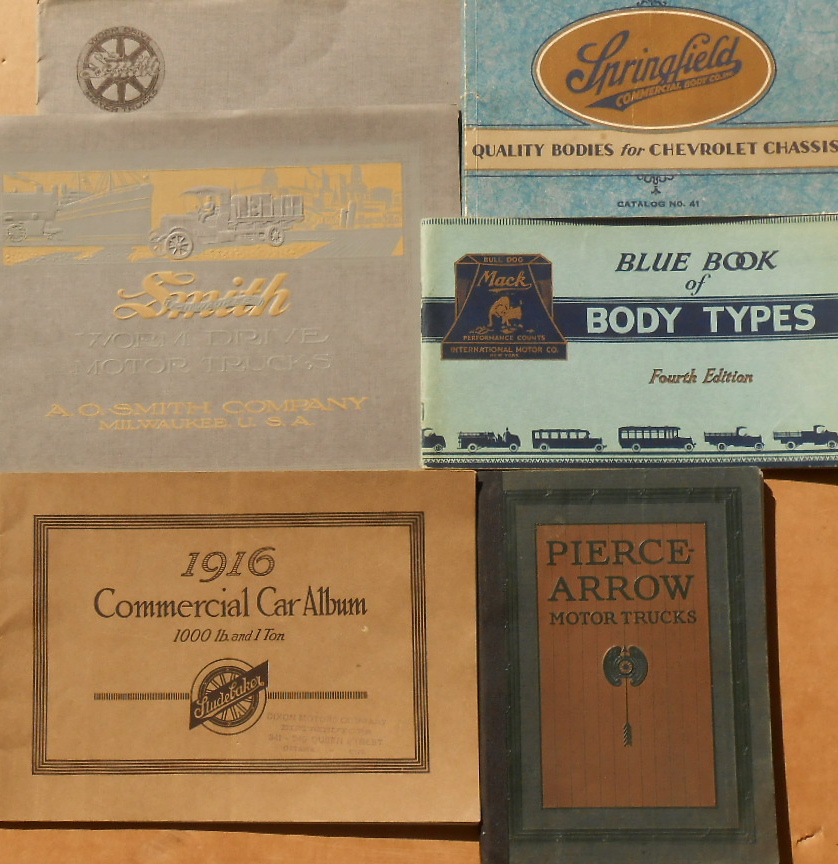 5 truck – 1914 Pierce, 1915 Smith, 1916 Stude, ca 1925 Mack, 1930 Chev Springfield Body 1928