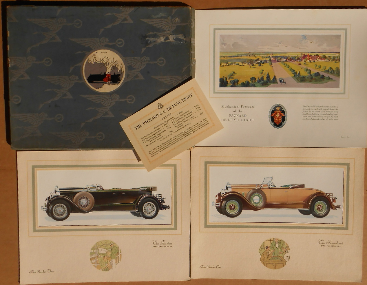 1929 Packard 645 boxed portfolio, 9 model folders and mechanical features