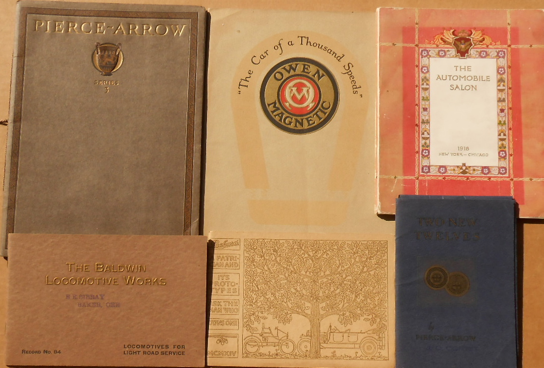 1914 Packard 2-38, 4-48, ’15 Pierce, ’16 Owen Magnetic, ’16 Baldwin locomotive, ’18 Auto Salon, ’32 Pierce