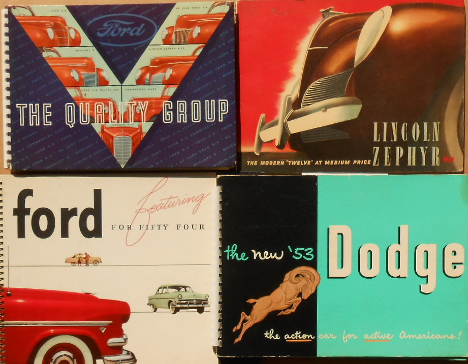 4dealer albums – 1939 Ford full line sp bound, 1938 Lincoln Zephyr, 1953 Dodge, V 8 & 6, 1954 Ford