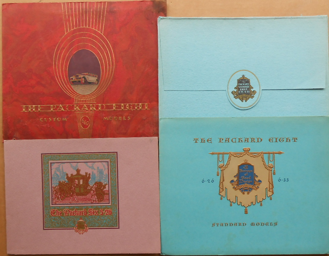3 Packard – 1928 526 catalog, 1929 626-633 portfolio with env, 1929 640 Custom 8 portfolio, cover stained