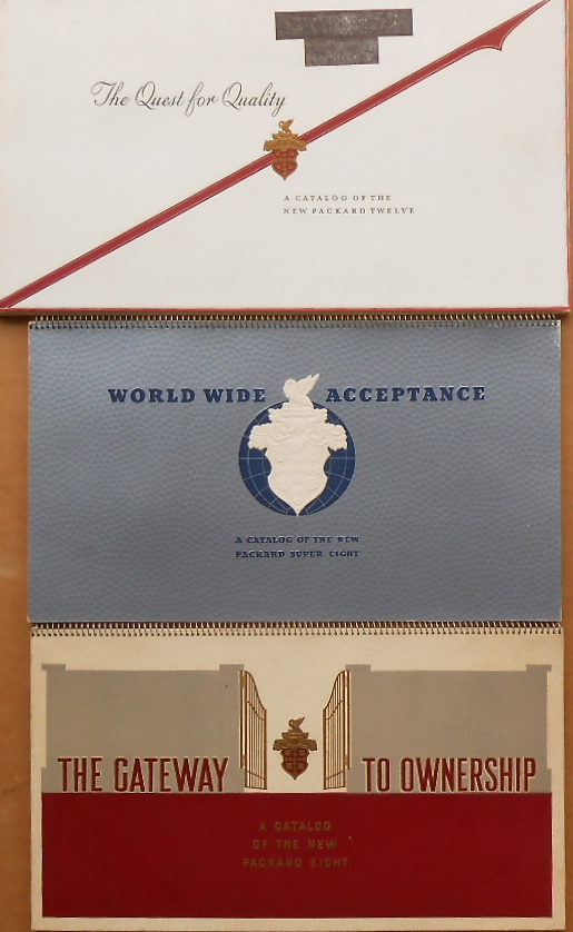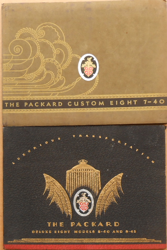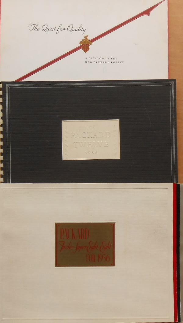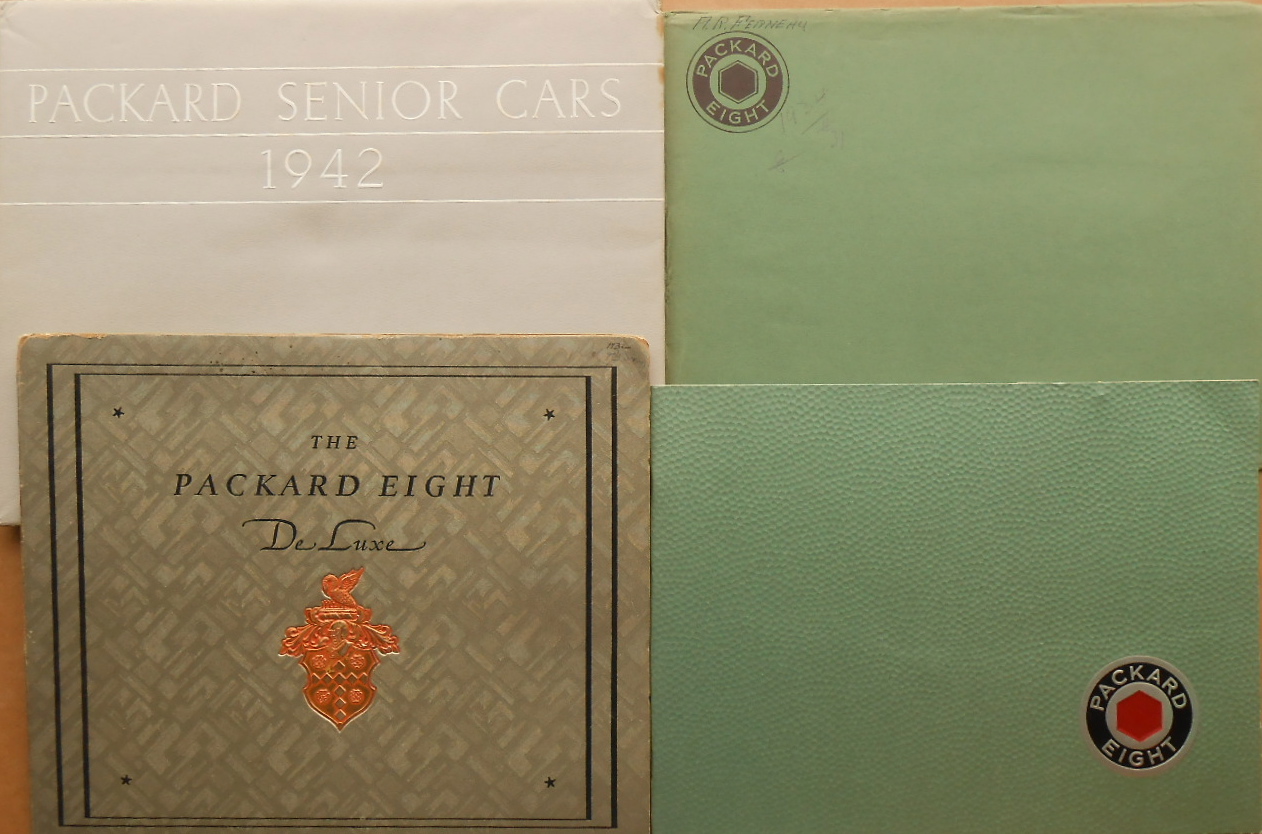 Three Packard items – 1932 Deluxe Eight and 1934 Standard Eight catalogs, 1942 Senior Cars portfolio