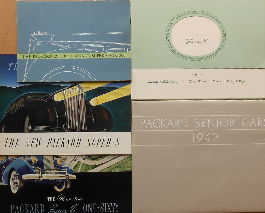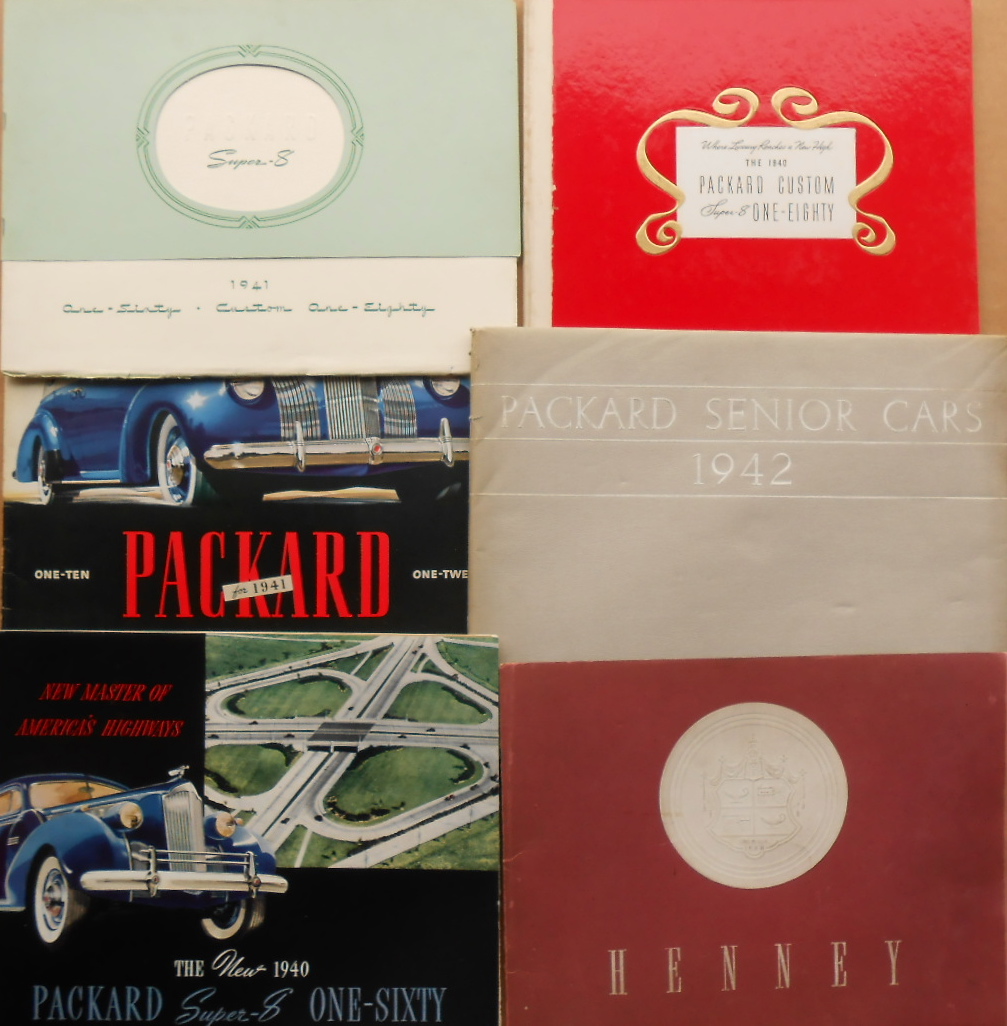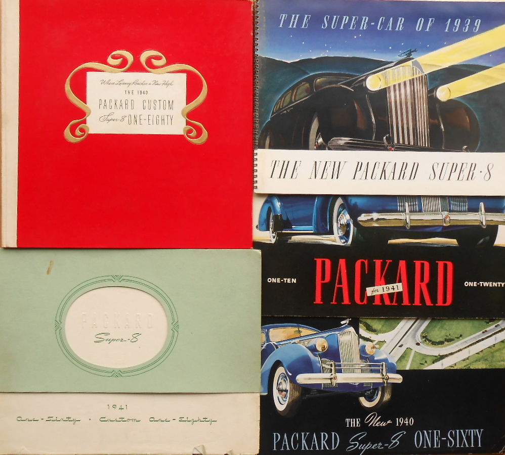 5 Packard catalogs – 1939 Super 8, 1940 180 Super 8, 1940 160 Super 8, 1941 160,180, 1941 120