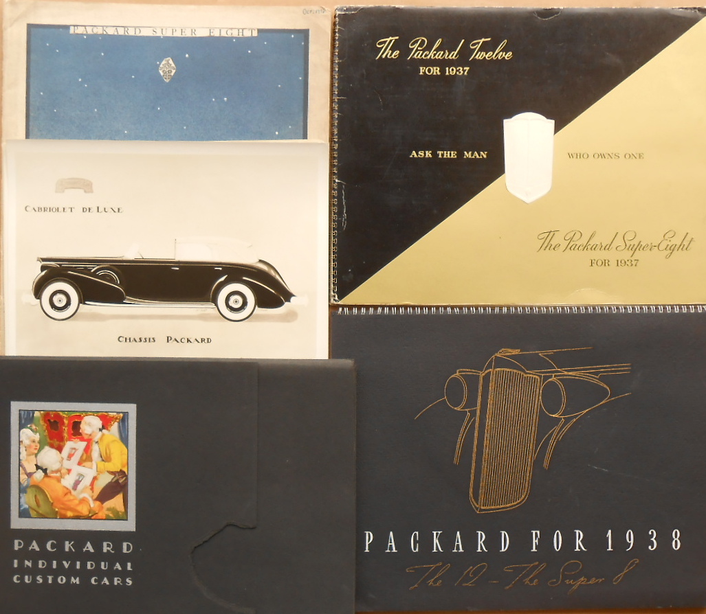 4 Packard – 1931 840 Ind Cus port missing Rollston Cab insert, ’38 British photo port, ’37 8,12, ’38 8,12