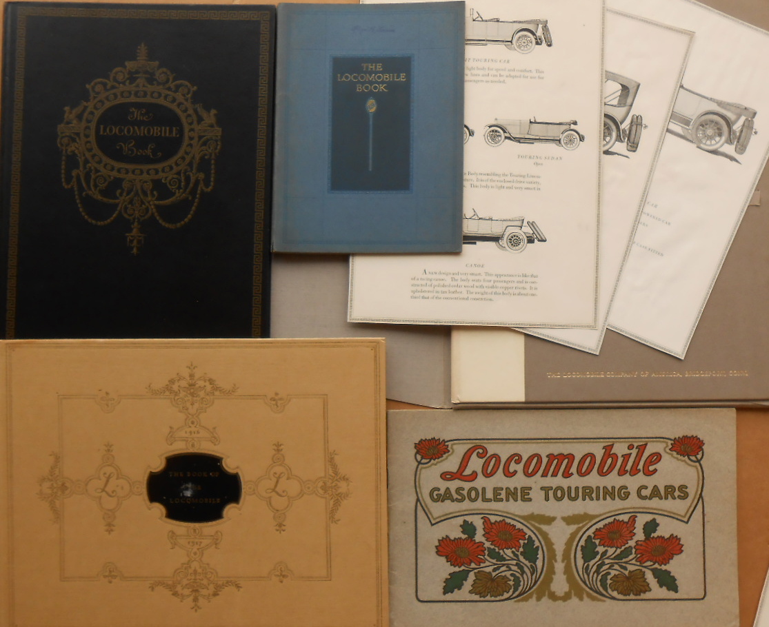5 Locomobile – 1905 cat, 1913 Bk, 1915 Bk, 1916 Bk, gray folder with some loose plates