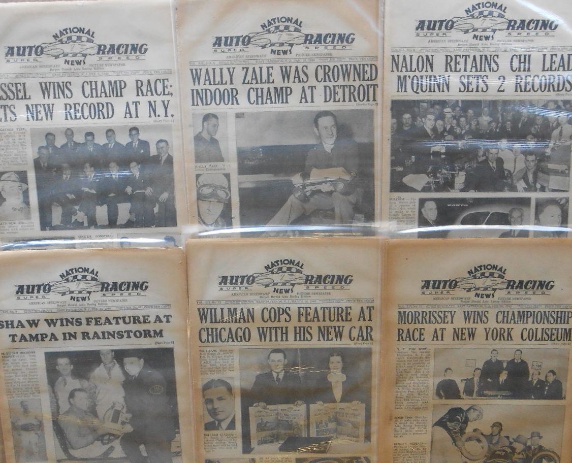 Three years, 1940, 41, 42 of National Auto Racing News weeklies, good condition in plastic sleeves