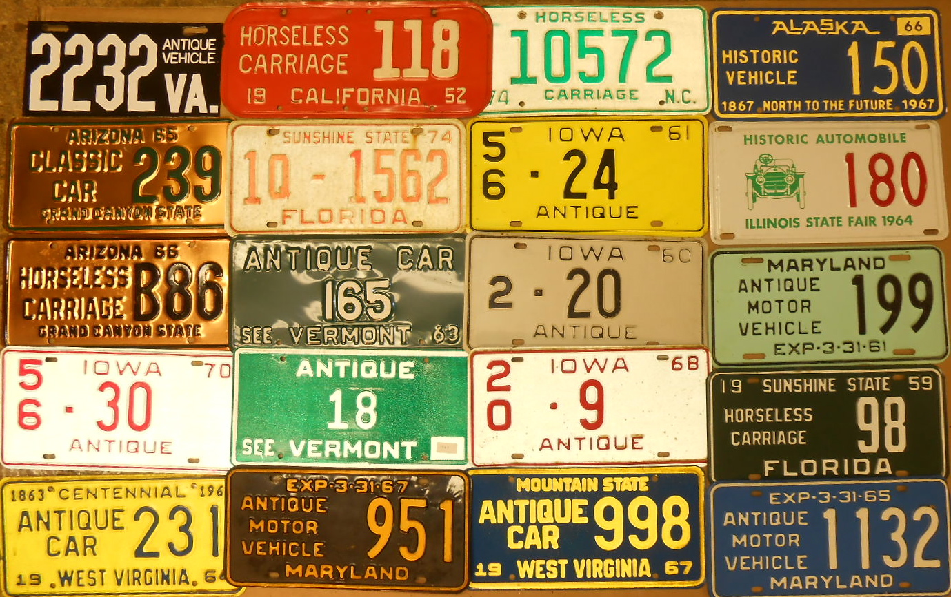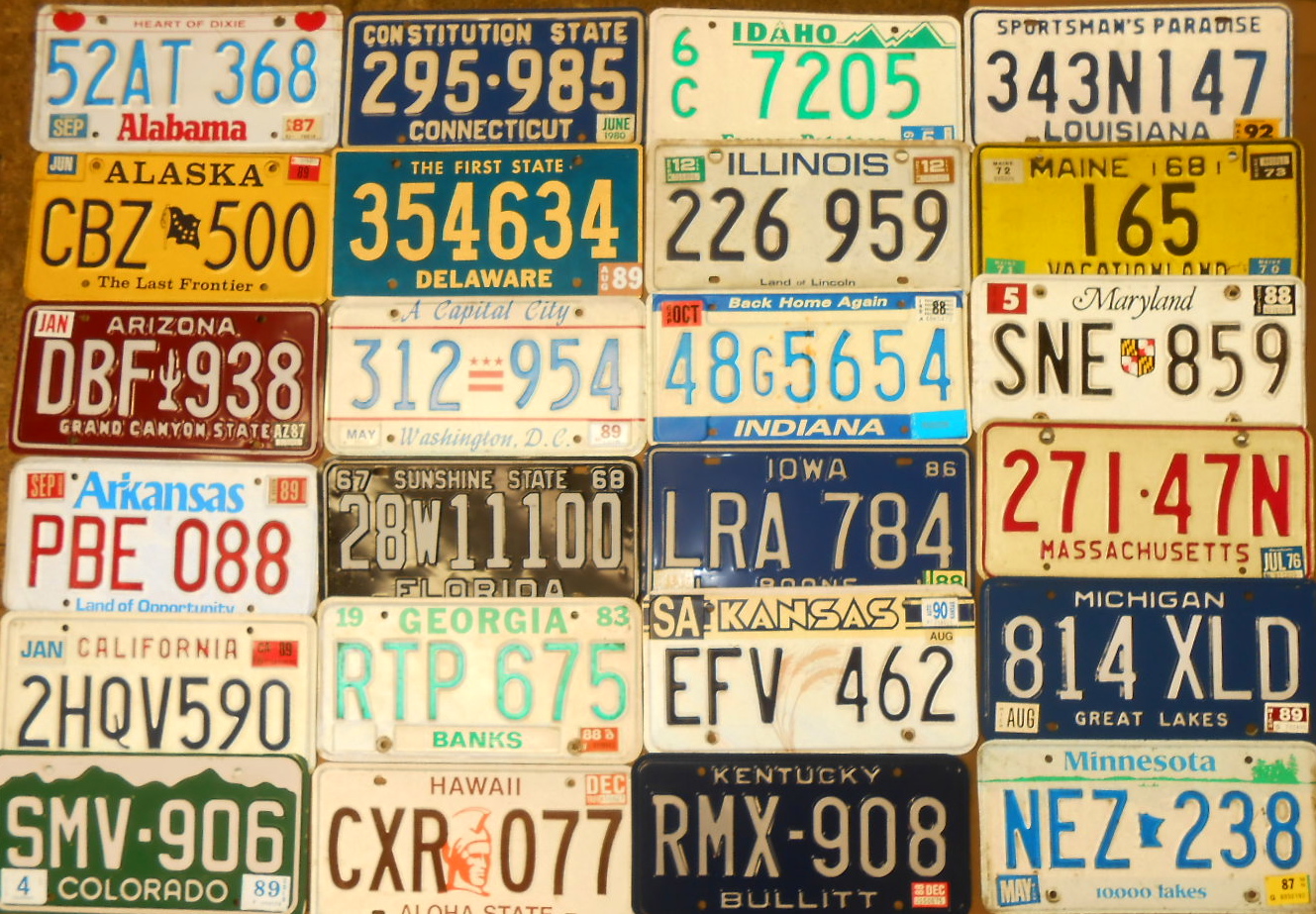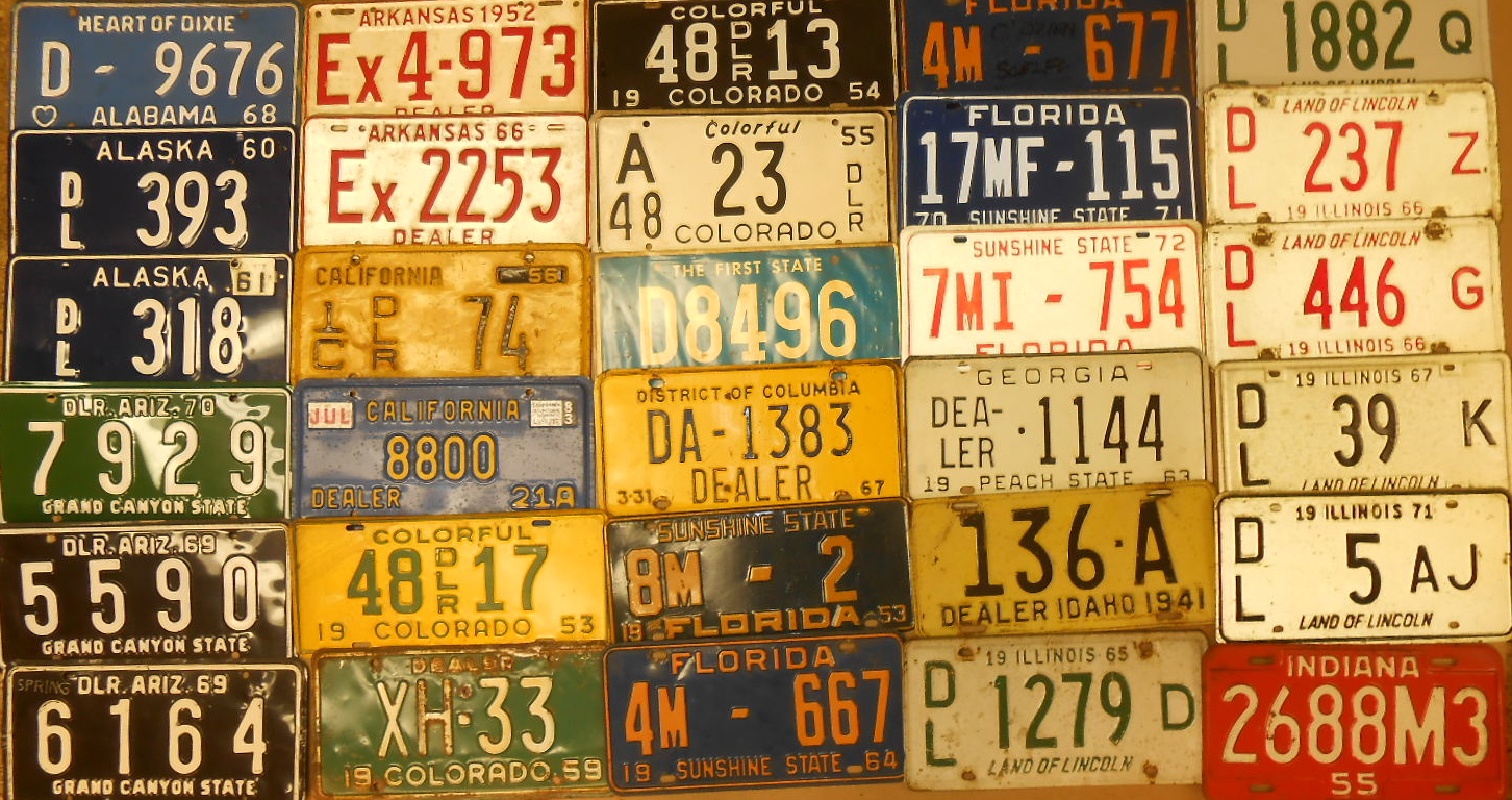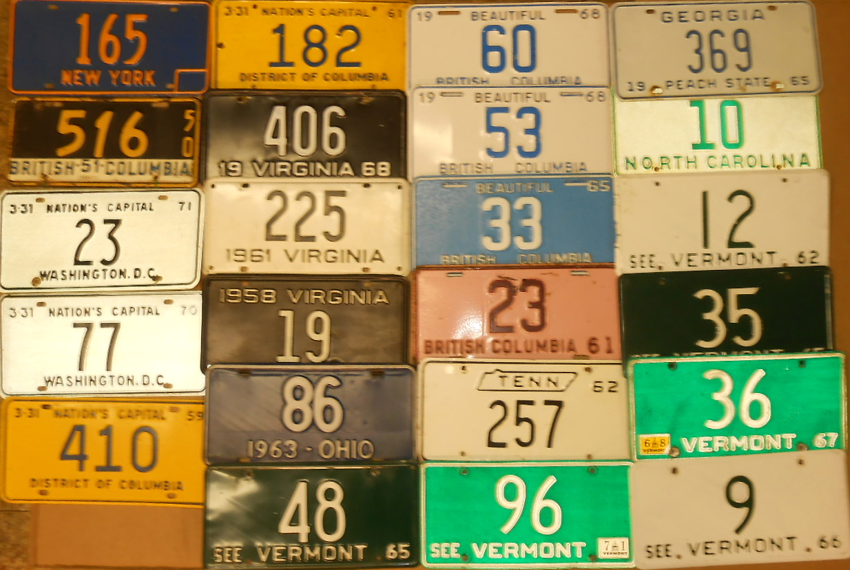 Sixty two plates – fifty states, Dist of Columbia, Canadian provinces