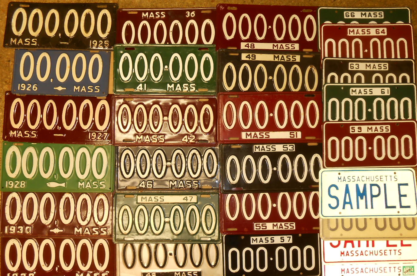 Fifty MA dealer plates from 1908 – 1980’s