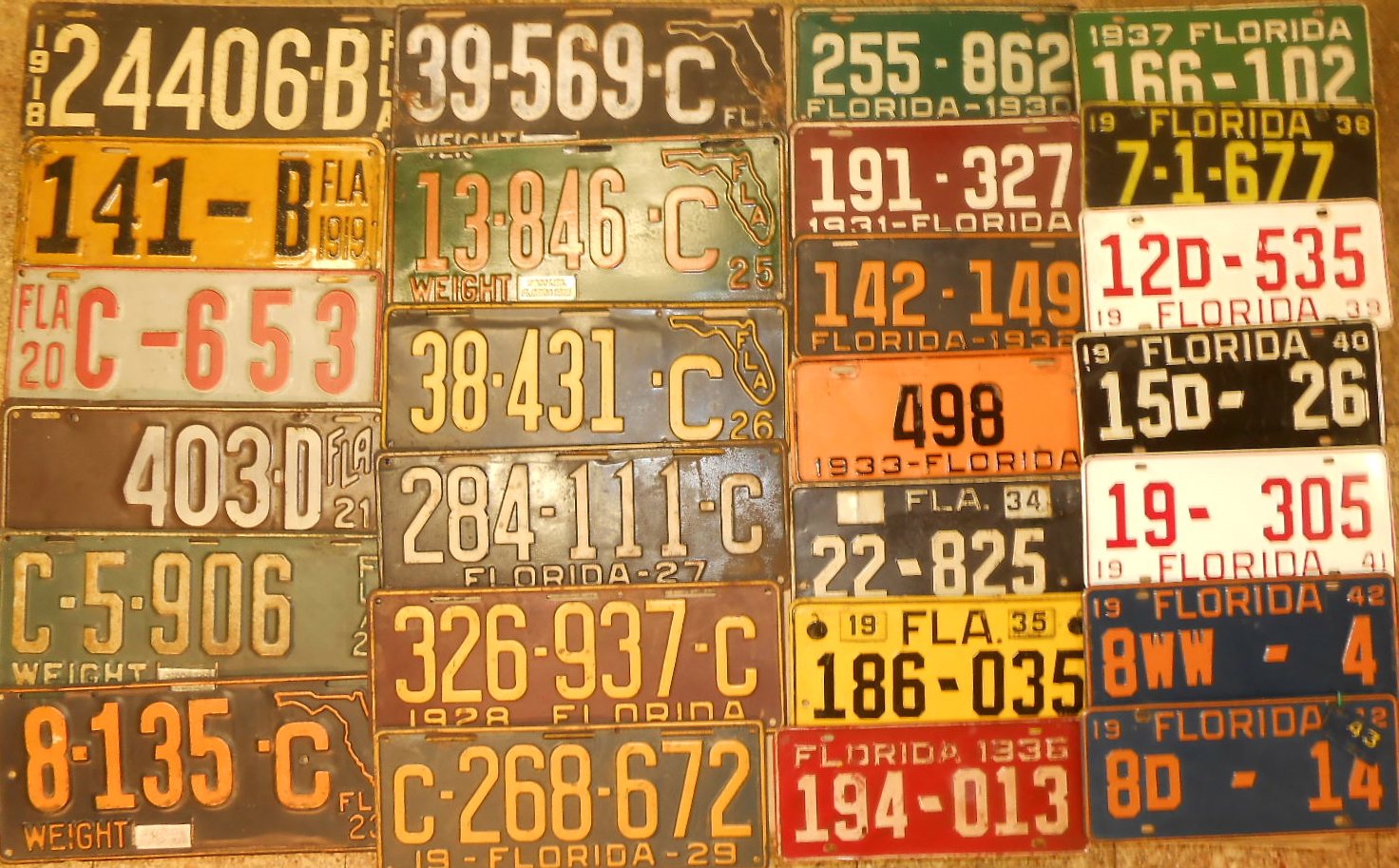 Forty seven antique auto plates from various states