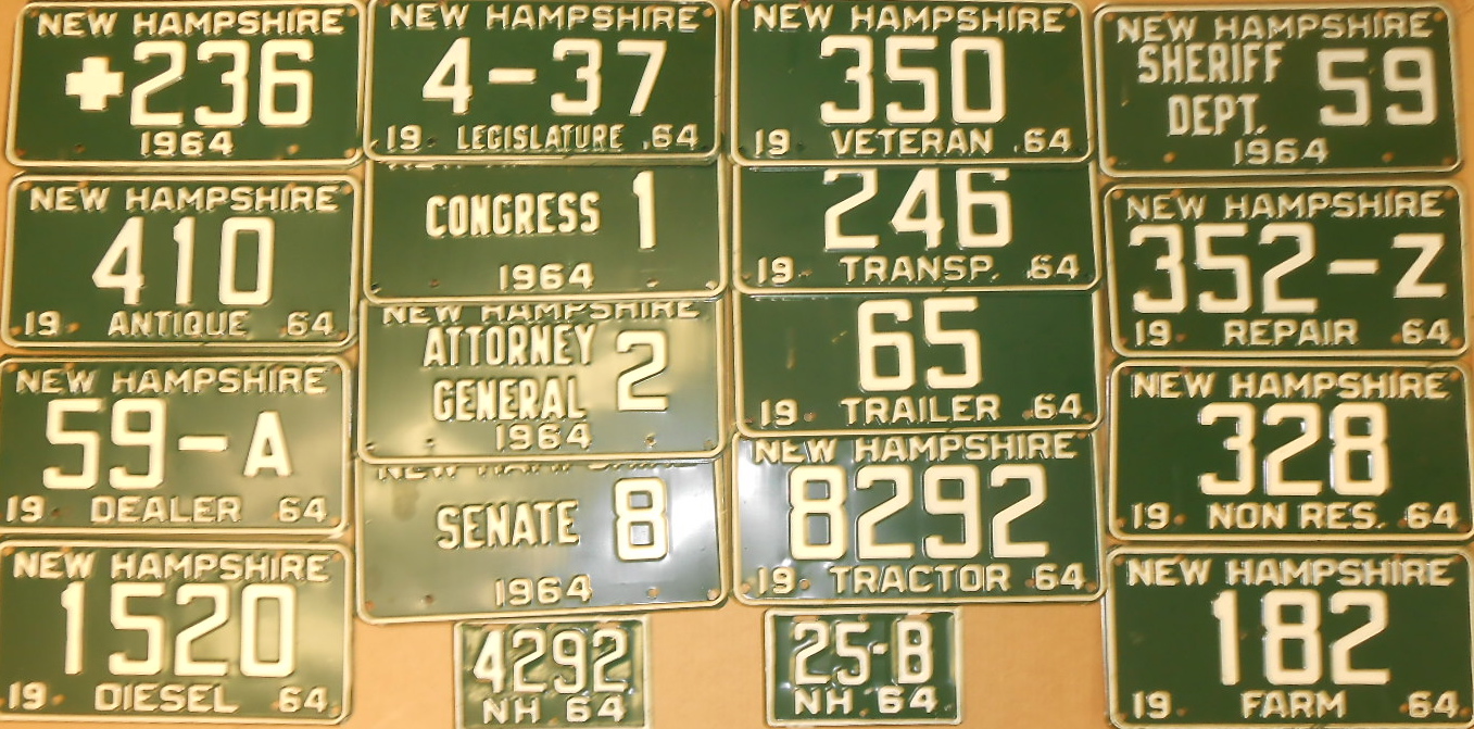 Thirty six 1964 NH plates – various types offered by NH in 1964