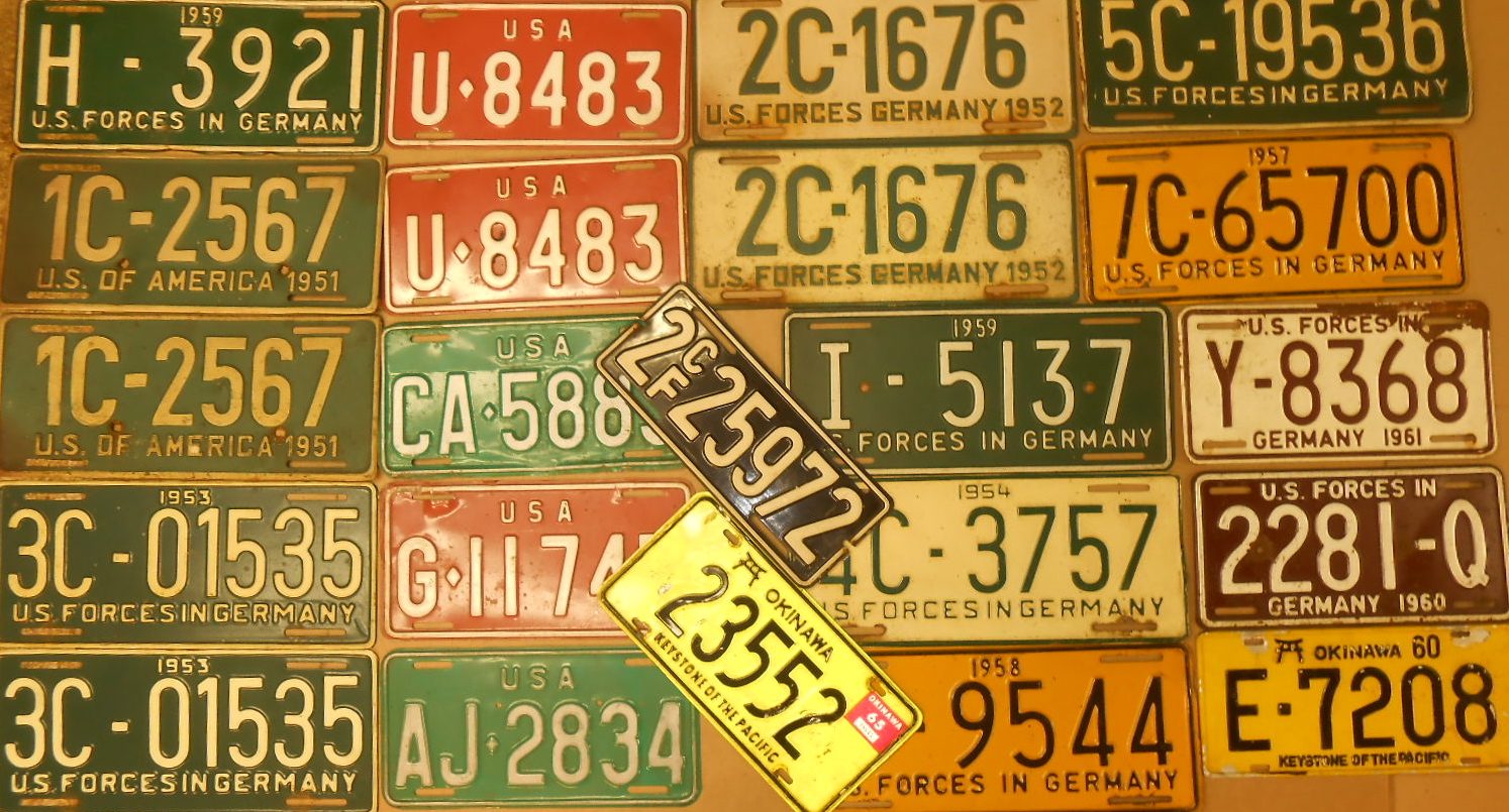 Twenty three single, two and three digit plates from US and Canada, 1950’s-1960’s