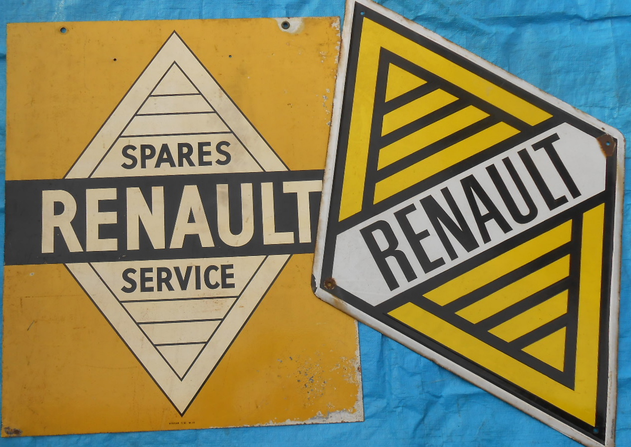 Two Renault signs – diamond shaped porcelain, 31 x 46, double sided rectangle 30 x 36