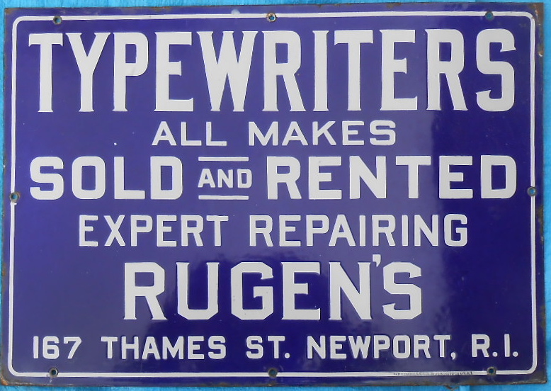 Typewriters Sold and Repaired , Newport, RI porcelain sign 20 x 14