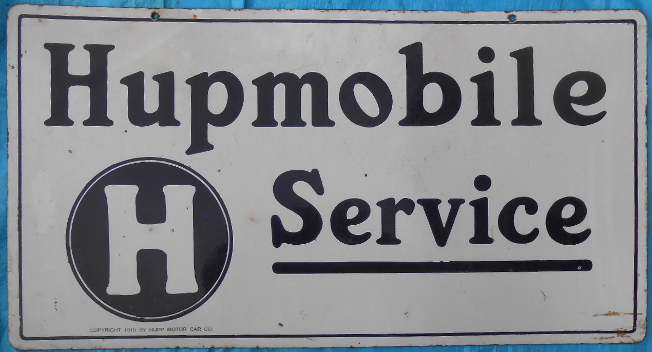 Hupmobile double sided porcelain sign, dated 1915, 30 x 16