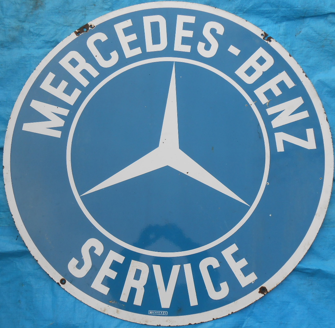 Mercedes Benz double sided porcelain, 42 inch dia, signed Walker