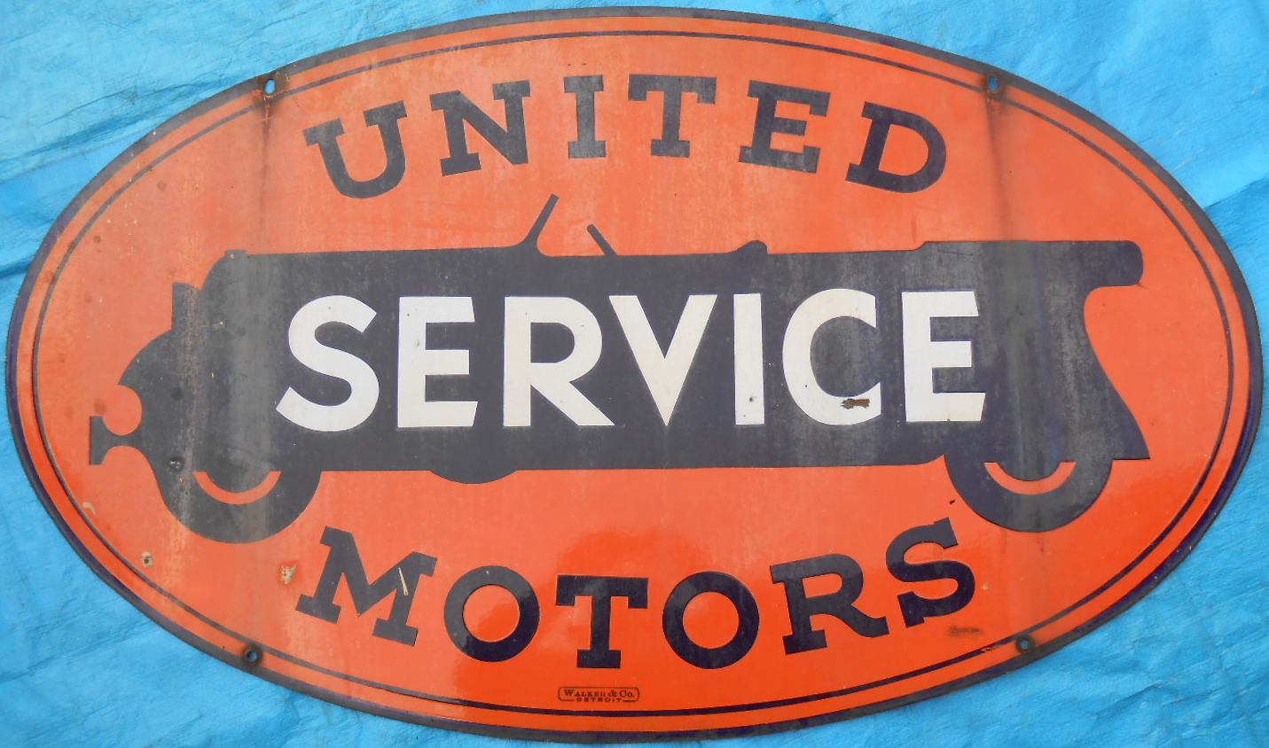 United Motors double sided porcelain sign, signed Walker, 48 x 28