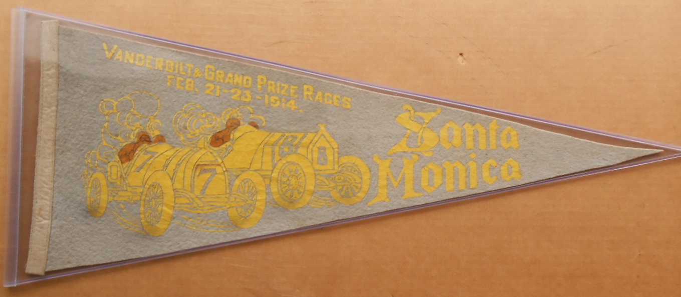 1914 Santa Monica Vanderbilt Cup Grand Prize Race felt pennant, 28 x 11
