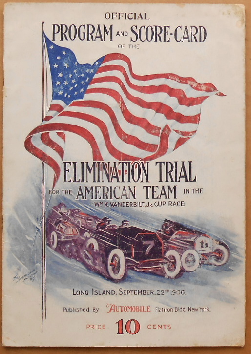 1906 Vanderbilt Cup Elimination Trial Program, not as common as race program, 6.5 x 9.5 16 pgs covers