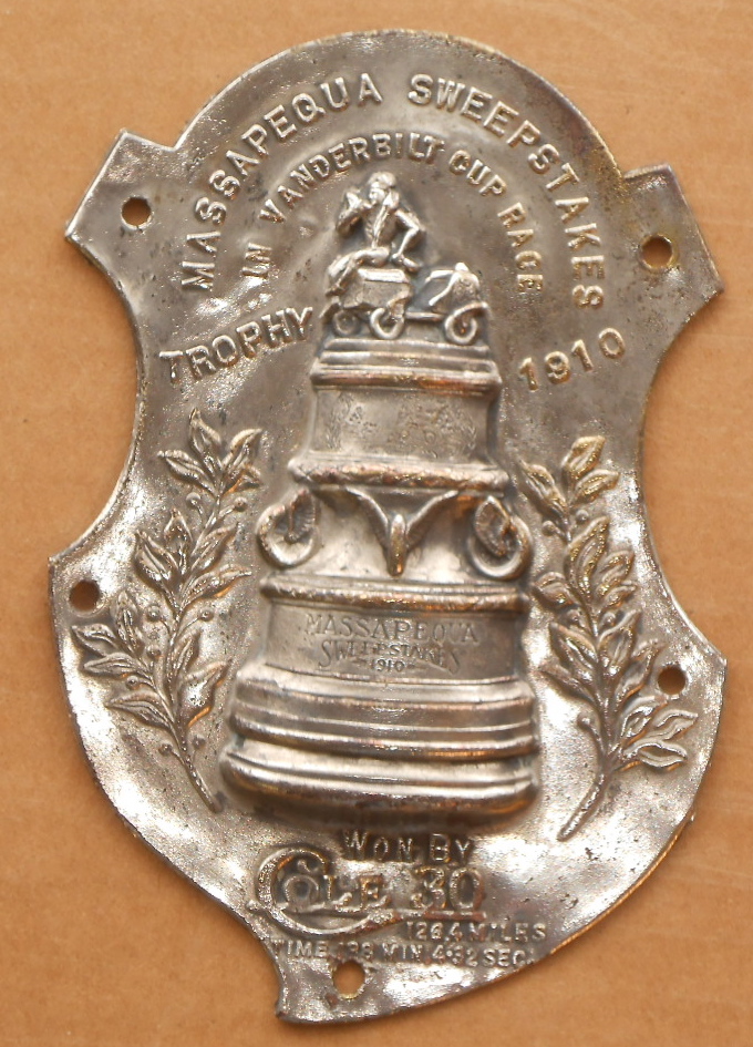 1911 Cole 30 Vanderbilt Cup Massapequa Sweepstakes trophy commemorative plaque, 4.75 x 3.25