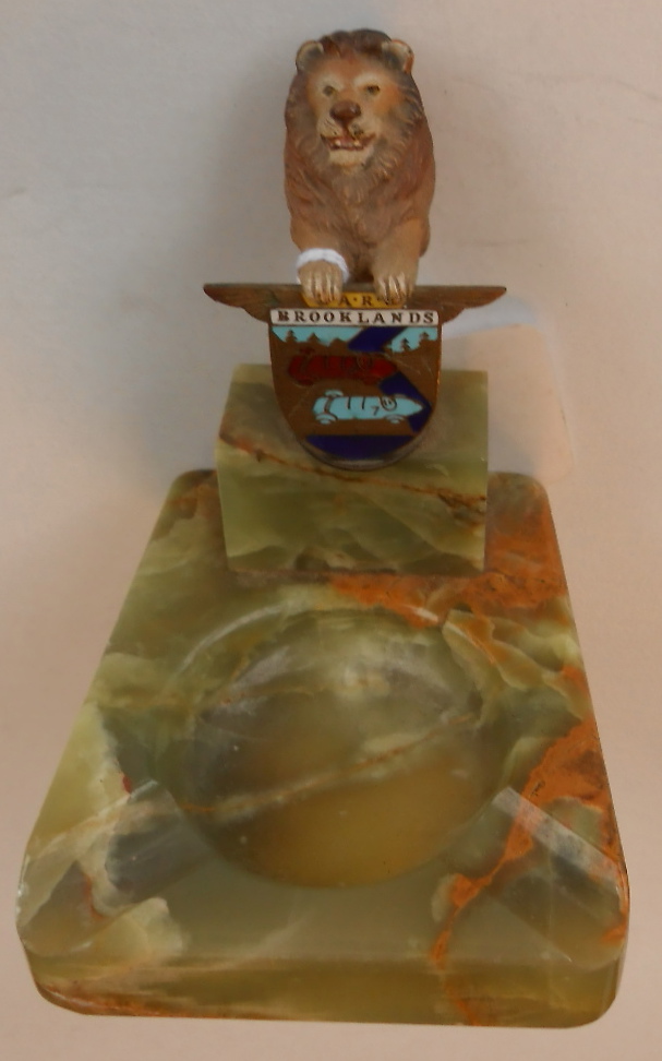 Brooklands ashtray, green marble base with Brooklands badge and cast bear