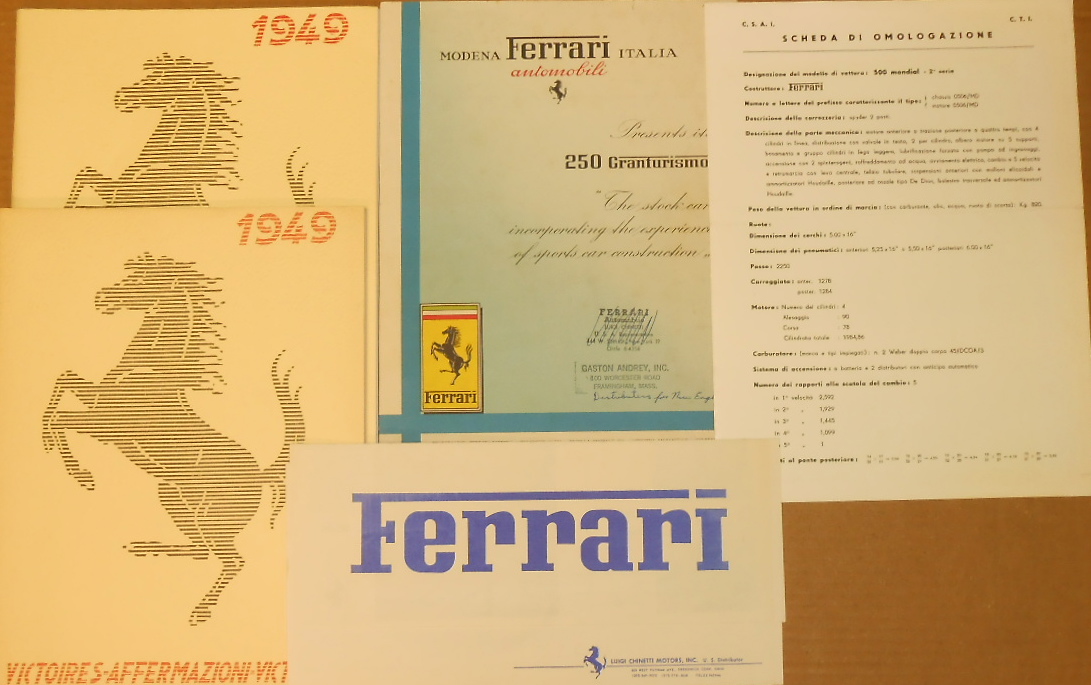 3 Ferrari broc – 500 Mondial, opens to 17 x 11, 365 GTB4, 246GT Chinetti fldr, 250 GT Boano, & 2 1949 repro