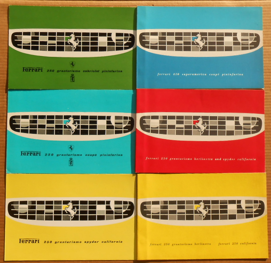 6 Ferrari items – 250 GT cab, 250 GT coupe, 250 GT Spyder broc – 410 Super, 250 GT, 250 GT loose leaf