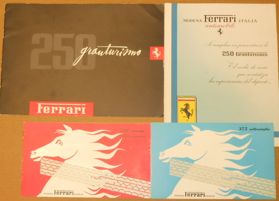 Four Ferrari broc – 250 GT black cover, 250 GT, 375 MM, 250-375 red cover, 375 MM blue cover