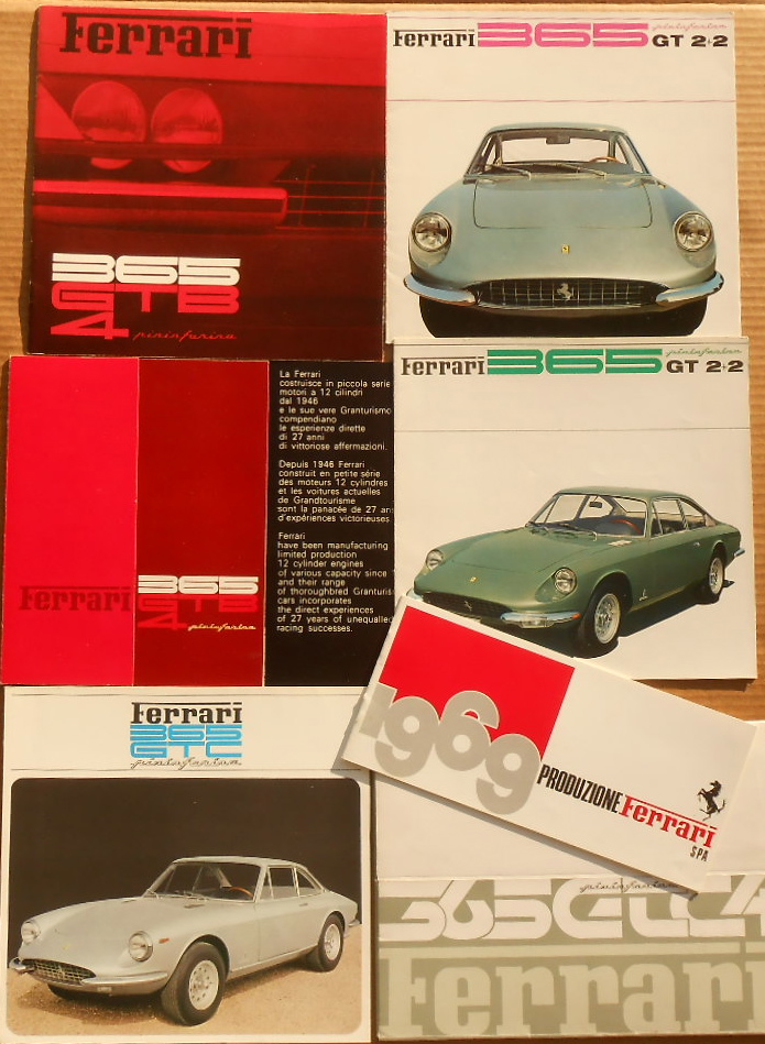 7 Ferrari bro, ca 1967-72 – six are specific models, one is full line production