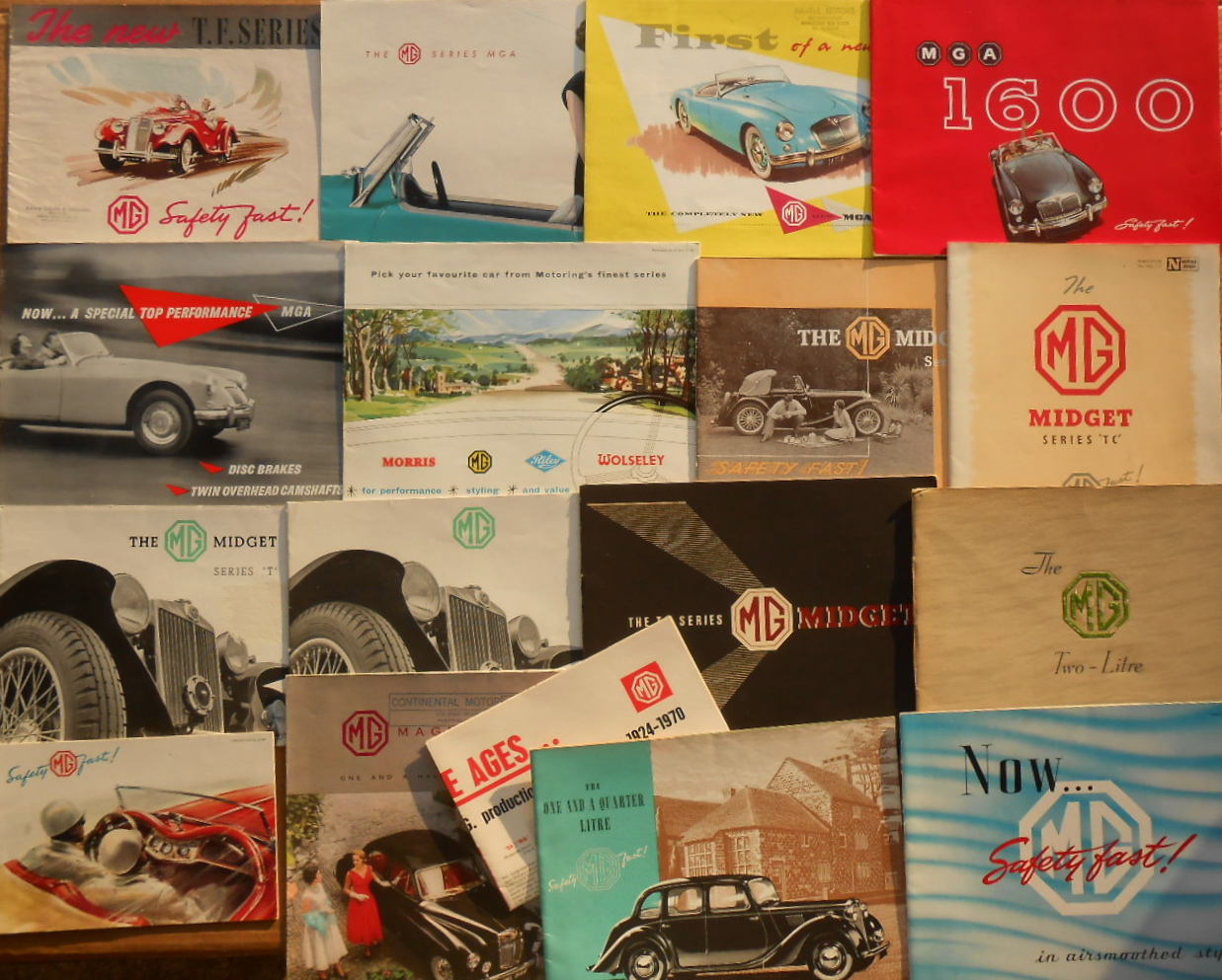 Sixteen MG brochures – Two liter saloon, T series, Magnette, MG A