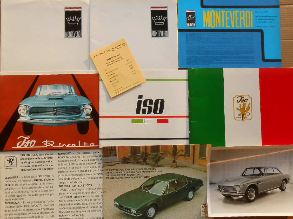 Iso and Monteverdi items – seven brochures, one photo, one single sheet, one price list