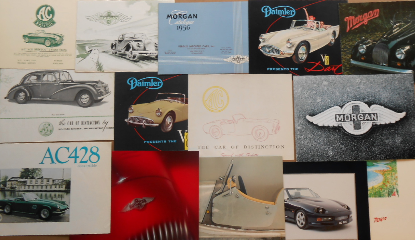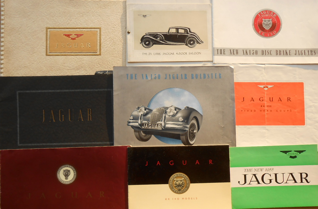 Jaguar sports car brochures – 1934 SS100 the 1974 XK E – 23 large and 3 small