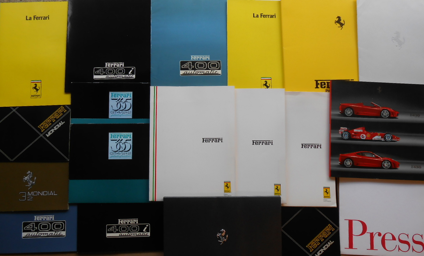 Thirteen Ferrari 360 Modena, Spyder, 456 GT and 550 Maranello brochures
