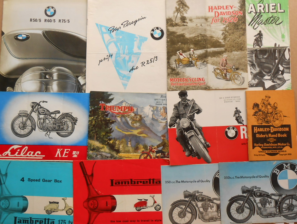 Twelve brochures misc items – motorcycle and scooter, both US and import