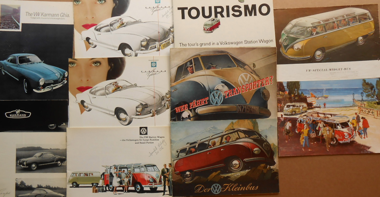 Ten Volkswagen camper, van and Karmann Ghia brochures